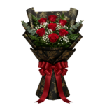 A perfect blend of romance and charm — this bouquet features vibrant red roses beautifully accented with baby’s breath, all